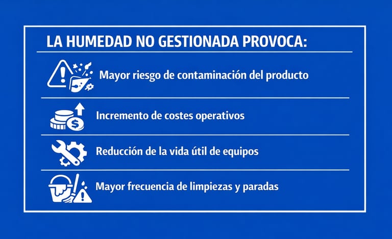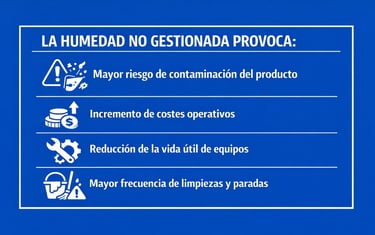En entornos de producción alimentaria, la humedad no controlada no solo genera problemas visibles como condensación o niebla, sino que afecta directamente a la calidad del producto y a la estabilidad del proceso.