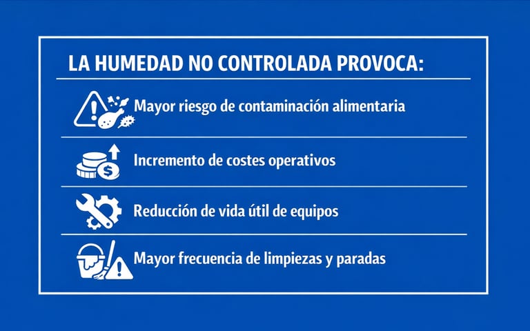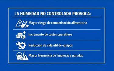 La humedad no controlada favorece el crecimiento microbiológico y compromete la seguridad alimentaria.