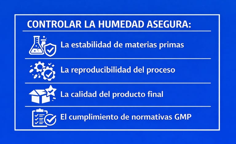 La humedad impacta directamente en procesos clave como granulación, secado y compresión.